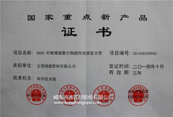國家重點新產(chǎn)品(纖維增強撓性復(fù)合管